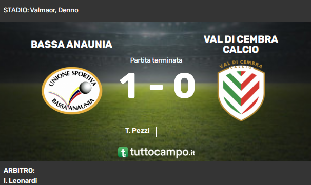 Bassa Anaunia - Val di Cembra Calcio 1-0 (p.t. 1-0)